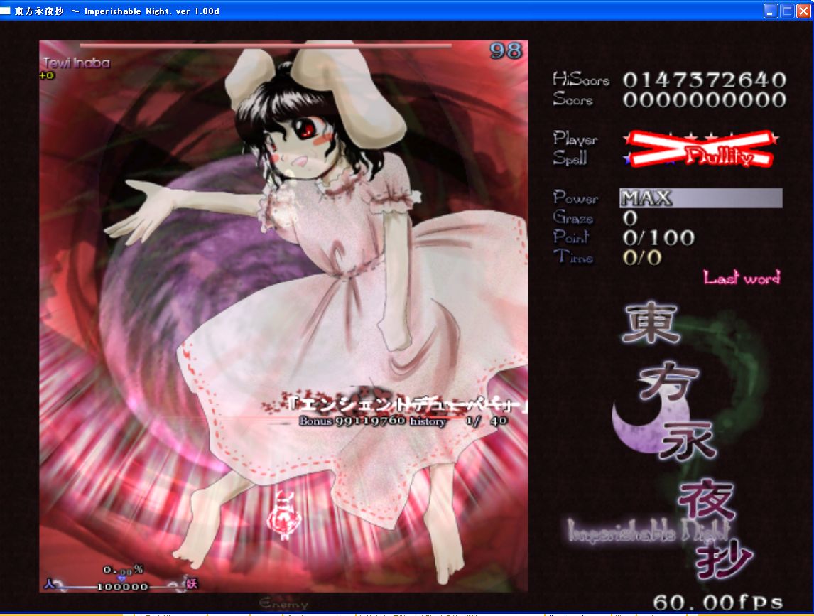 「西行寺無余涅槃」 Lunaticクリア、コンティニュー可