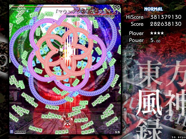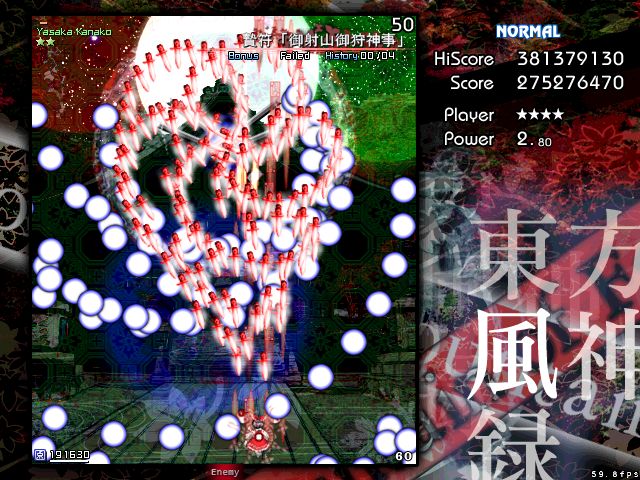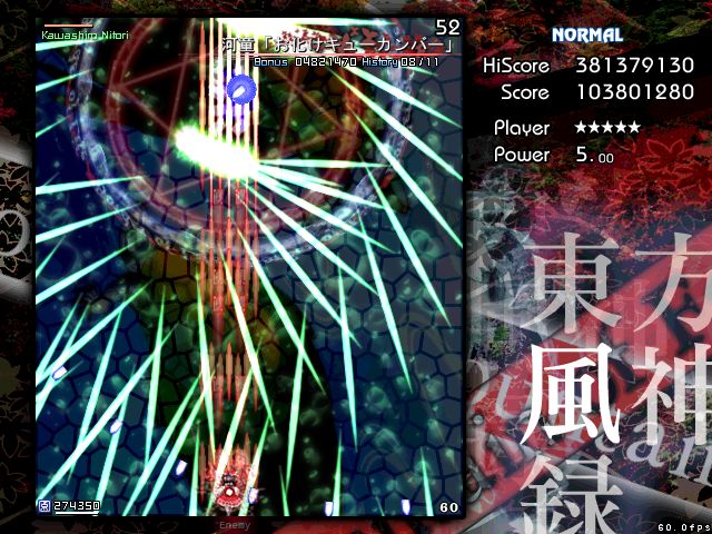 今週は魔理沙をクリアーしよう。早めに出来たら風神EXTRAか妖々夢EXTRAに挑もう。