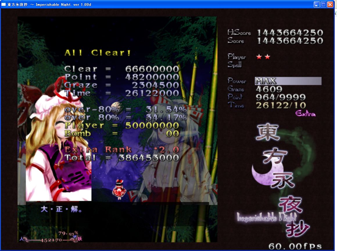 EXTRA4キャラやり、6キャラでノーマルクリアーをし、スペルカード取得も170を超えた。